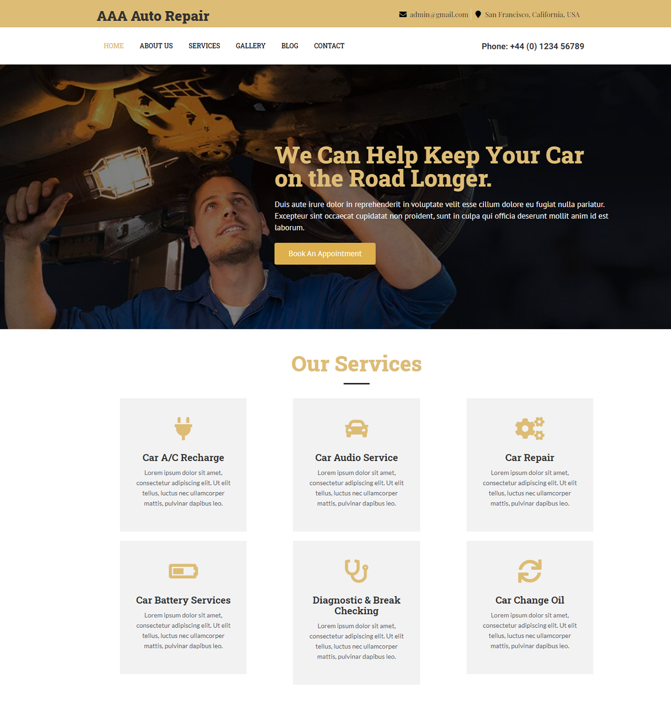 Drive your auto repair business forward with this robust and user-friendly website template. Featuring a professional design, it includes sections to highlight services, team expertise, customer reviews, and special offers. With easy appointment scheduling, a parts and services catalog, and mobile optimization, this template helps build trust with clients while streamlining the booking process and showcasing the quality of your auto repair services.